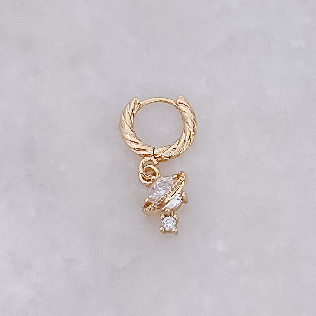 Dit schattige oorbelletje in de vorm van een planeet met een sterretje symboliseert avontuur en verkenning.