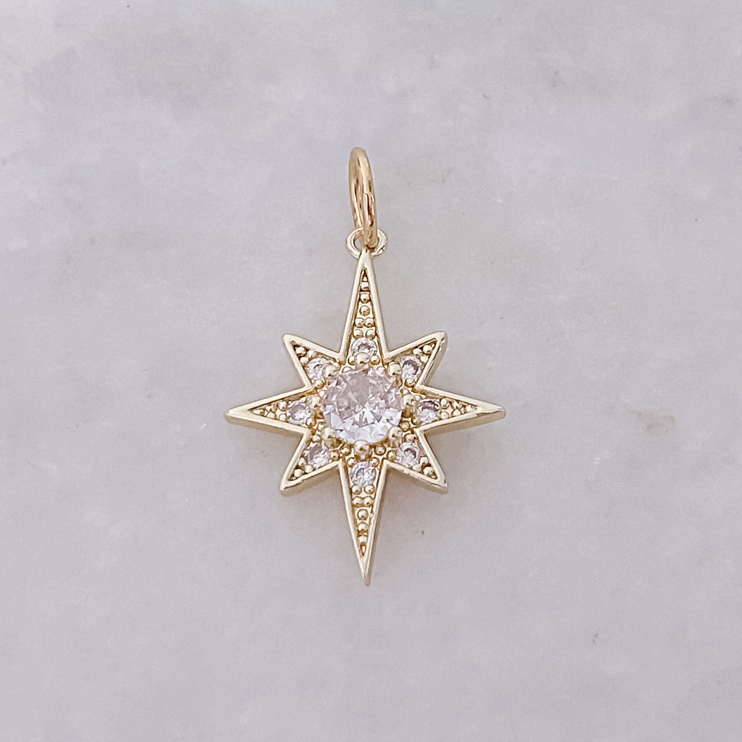 Dit betoverende bedeltje in de vorm van een grote ster met een schitterende diamant in het midden symboliseert dromen en helderheid. Voeg dit sprankelende bedeltje toe aan je collectie en laat je unieke licht stralen!